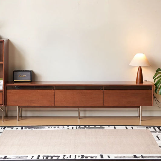 Low leg TV consoles sit closer to the ground, offering a sleek, modern look and better stability, ideal for minimalist spaces. High leg TV consoles provide added clearance underneath for easier cleaning and a lighter visual profile, perfect for airy or Scandinavian-style interiors.