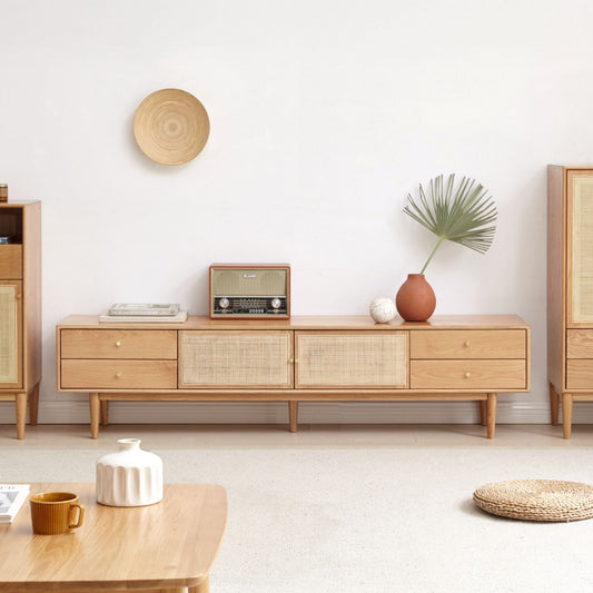 Our TV consoles are crafted using high quality oak wood and rubberwood. Oak offers durability and a rich, natural grain, while rubberwood is known for its strength and eco-friendliness. Both options provide a solid, long lasting foundation for your entertainment setup.